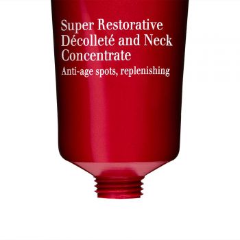 Detta oljefria koncentrat förbättrar kvaliteten på hudtexturen - från haka till övre bröst - med en kombination av utjämnande och skönhetsförhöjande växtextrakt. Doften är uppigande med fruktiga och blommiga noter. Reducerar synligheten av åldersfläckar. Innehåller bl a Ekologiskt harungana-extrakt (fyller på, hjälper till att reducera framträdande slapp hud, rynkor och veck på dekolletaget), Ekologiskt Montpellier rock-rose extrakt (hjälper till att reducera synligheten av åldersfläckar och jämna hudtonen), Ekologiskt havre polyoses (hjälper genast till att visuellt "lyfta" hudytan och att jämna ut grövre partier).