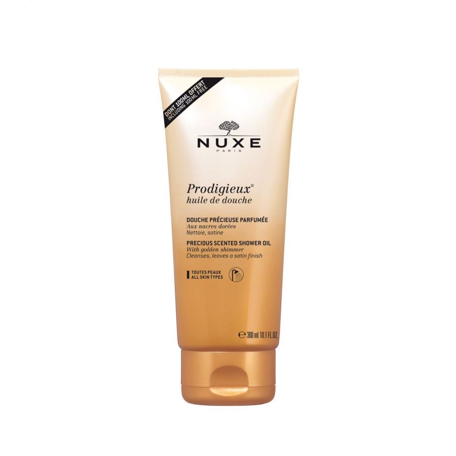 En underbar, skonsam och glamourös duscholja som förvandlas till ett skimrande lödder vid kontakt med vatten och lämnar huden sammetslen. Oljan passar alla hudtyper och är en familjemedlem till Prodigieux-produkterna med samma lyxiga doft. Innehåller sötmandelolja som rengör samt mineraliskt guldskimmer. Har doften av Huile Prodigieuse® med apelsinblomma, magnolia, vanilj.