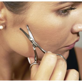 Klipp ansikts- näs- och öronhår på ett smidigt, snabbt och säkert sätt med Facial Hair Scissors från Tweezerman! Saxens ergonomiska design och generösa handtag ger bra komfort och kontroll så du kan klippa hår med precision. Saxens spets är rundad, så du behöver inte vara orolig för att skära dig. Saxen är gjord av rostfritt stål, ett slitstarkt material som är enkelt att rengöra. Vegansk.